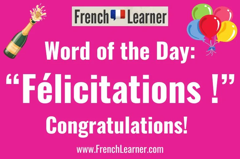 French word of the day lesson explaining how to use félicitations, meaning congratulaitons.