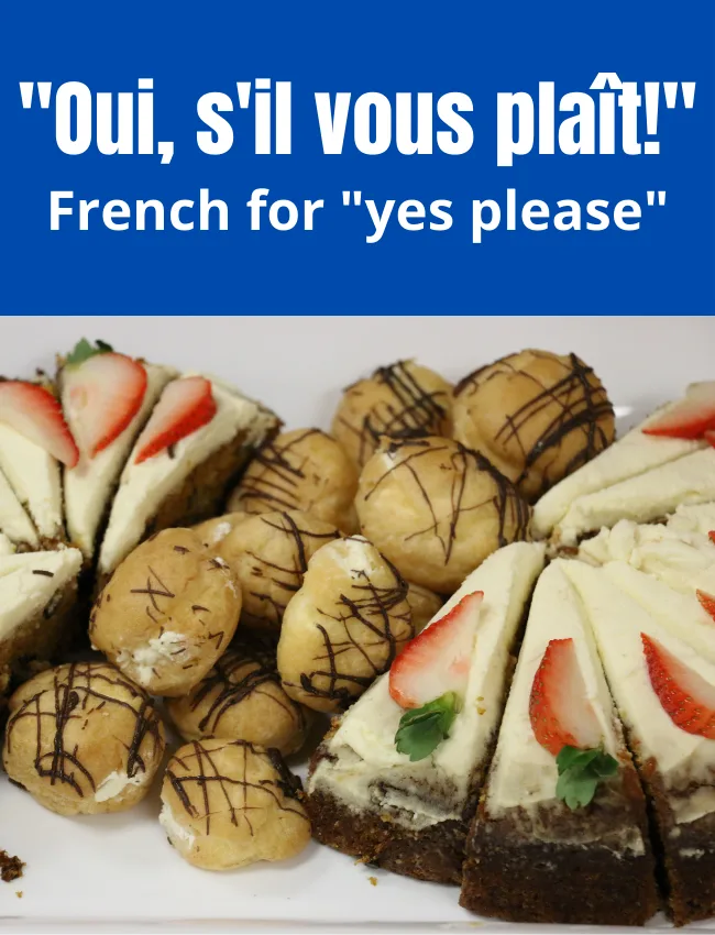 Oui, s’il vous plaît is how you say yes please in French. You can use this in all types of formal situations where you’d like to be polite.